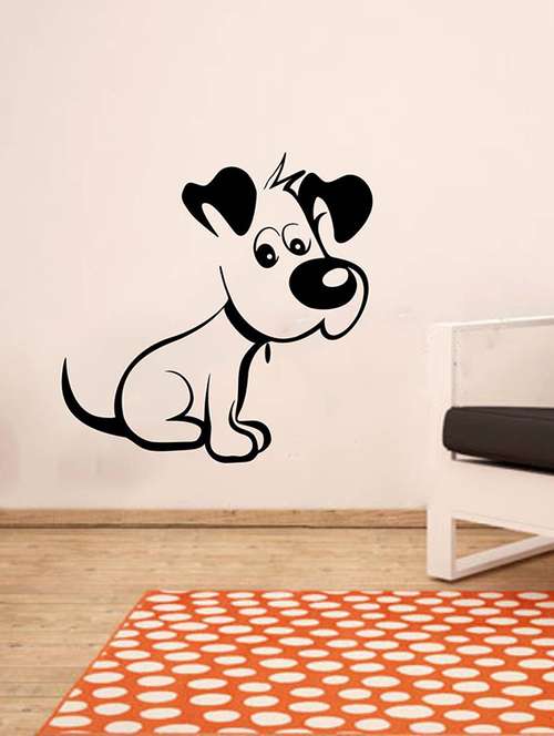 rawpockets wall decals ' cute baby dog ' wall stickers (pvc vinyl) multicolour