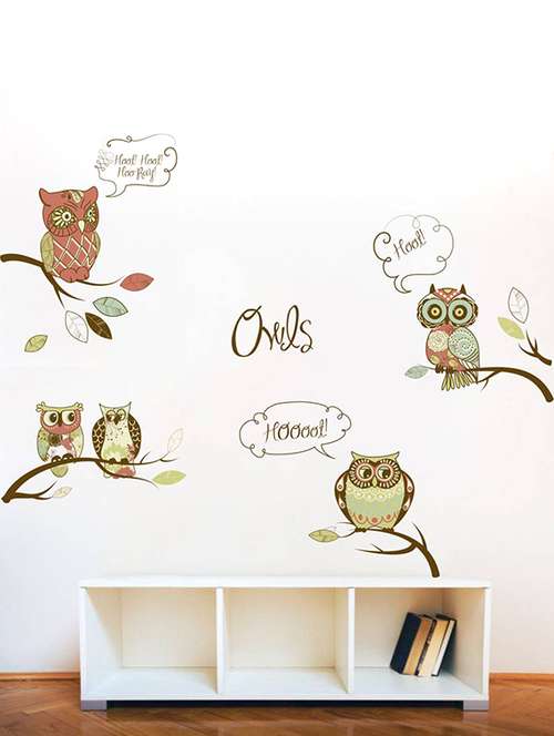 - » rawpockets wall decals ' owls family story - kid's room ' wall stickers (pvc vinyl) multicolour