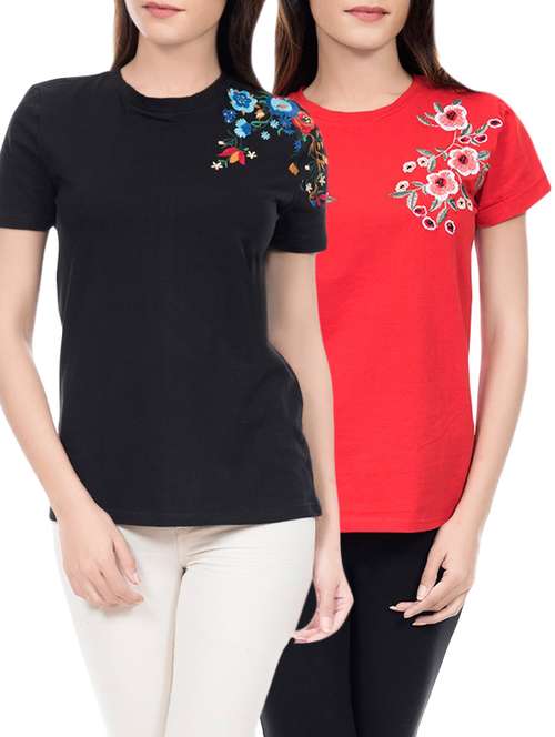 round neck embroidered tops