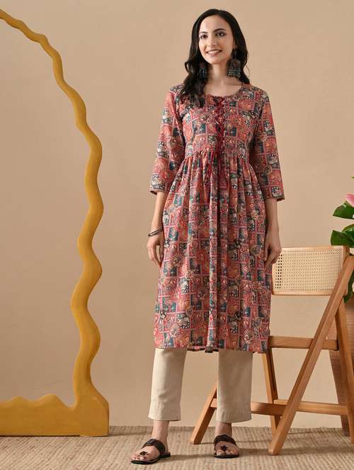 - » women printed three quarter sleeve a-line kurta