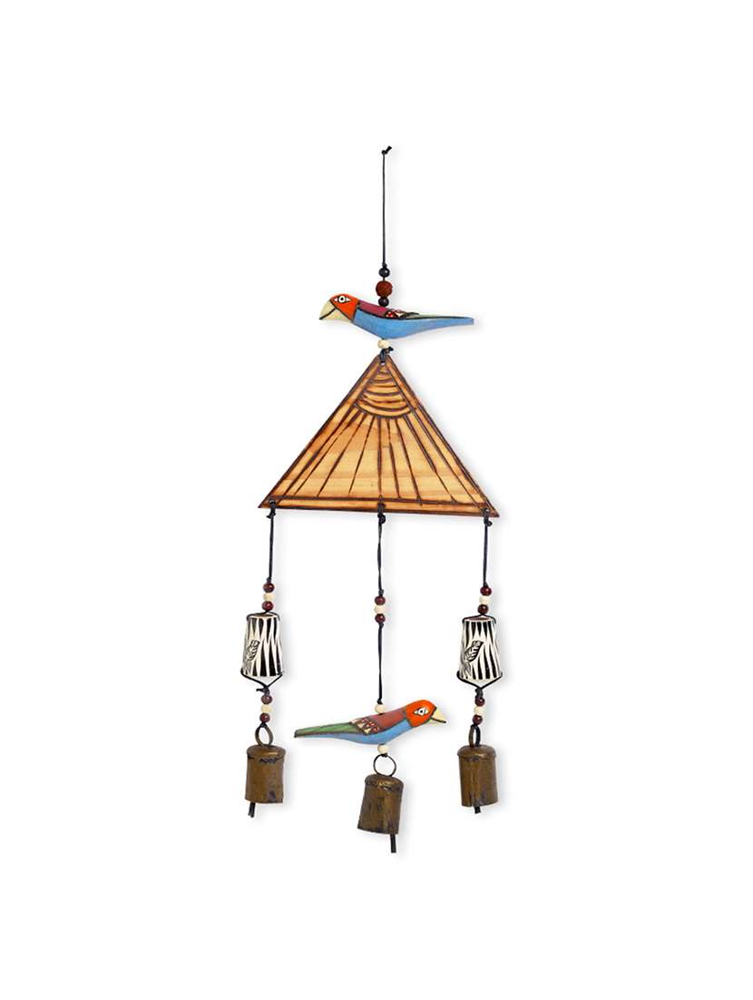 - » exclusivelane wooden handmade & hand-painted bird wind chime with kutchh bells