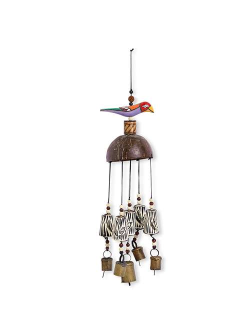 - » exclusivelane wooden handmade & hand-painted bird wind chime with kutchh bells
