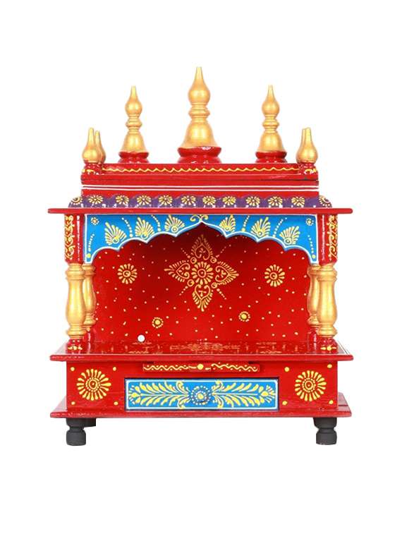 - » rajasthani ethnic handpainted wooden temple size 6 x 6 x 12 inch
