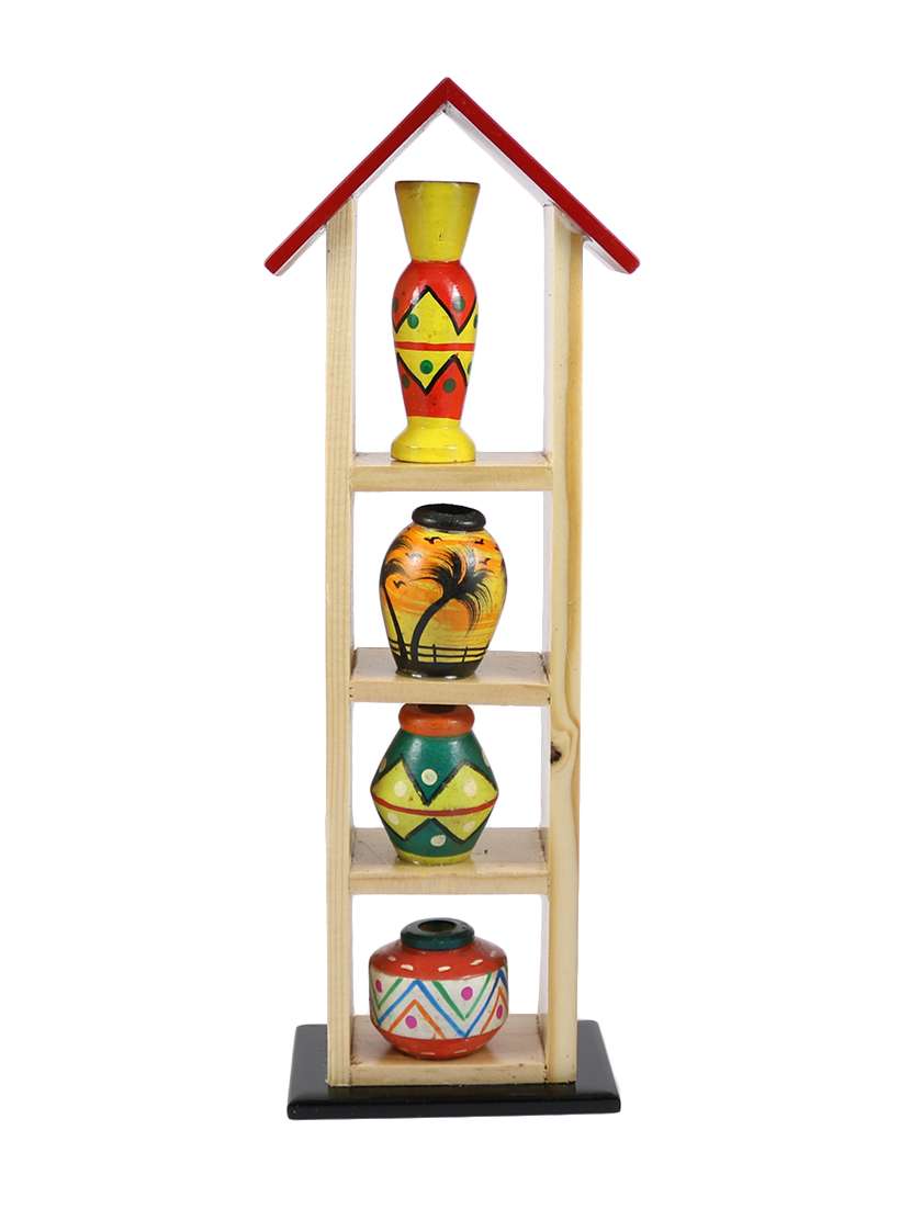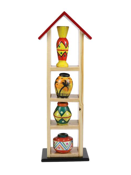 - » handcrafted wooden multi colored organic painted set of 4 pots