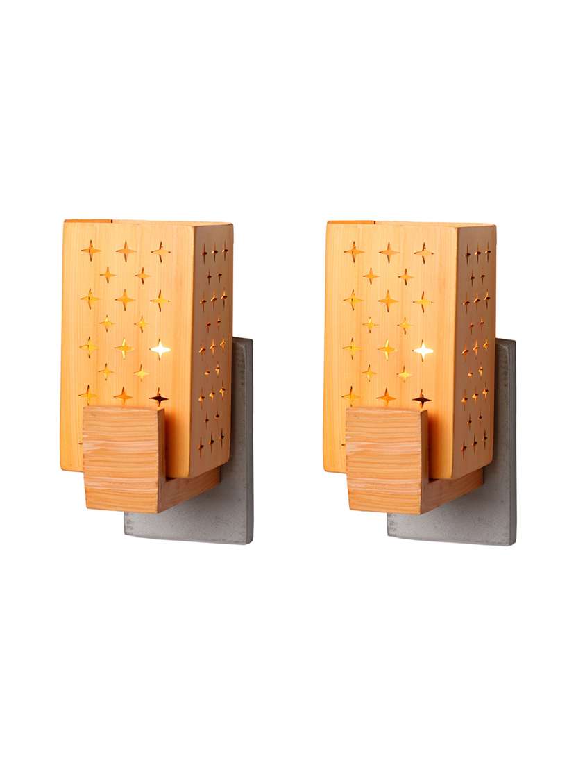 - » somil designer wooden wall lamp (set of 2)- aa41