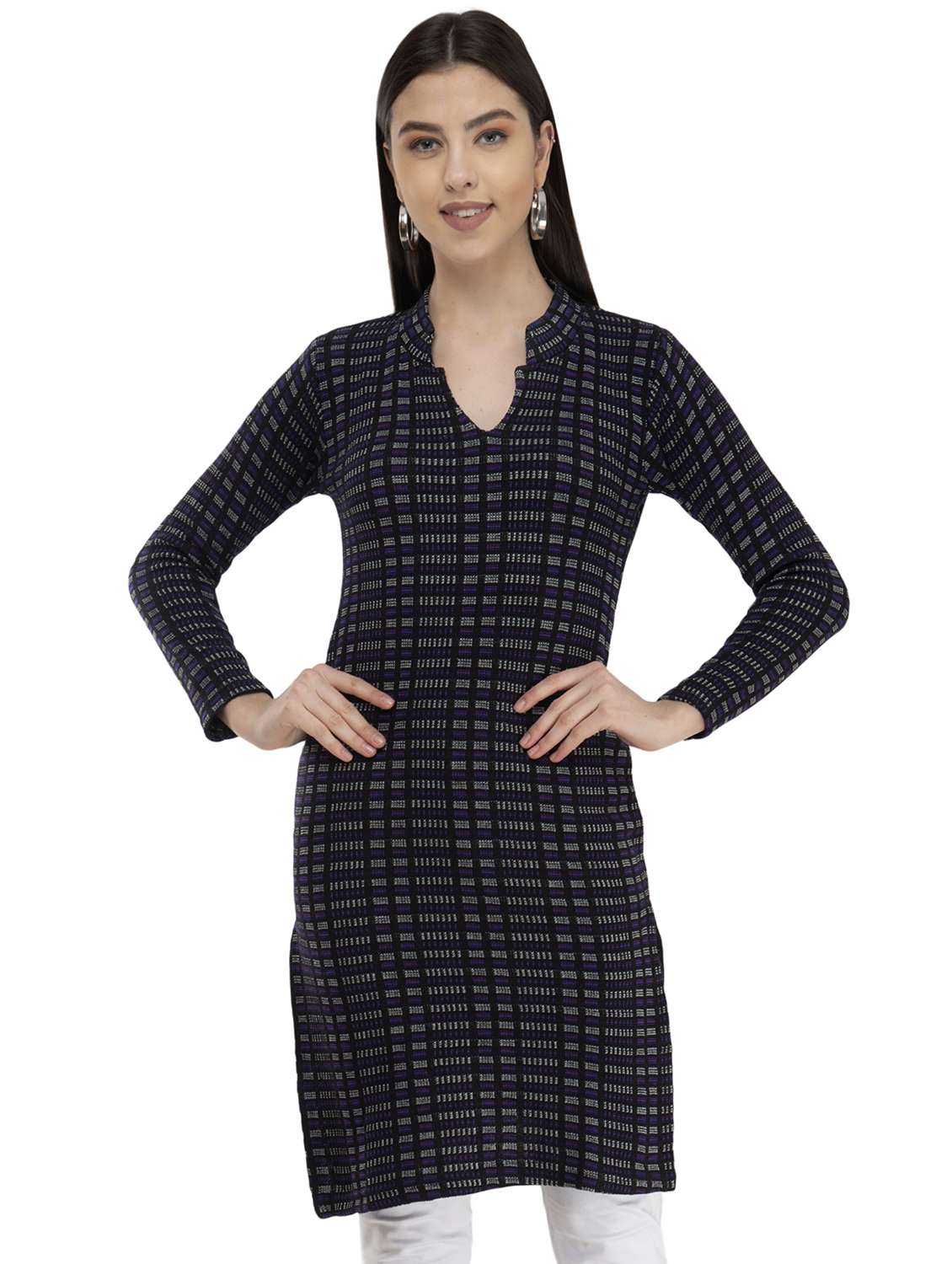 - » checkered straight woolen kurta