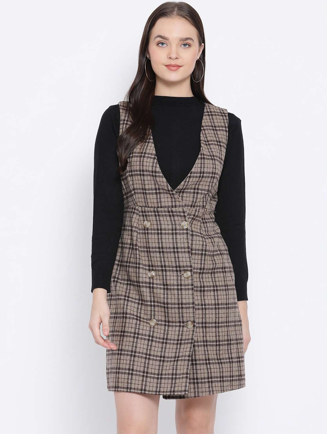 double breasted checkered dress