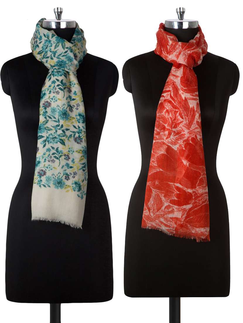set of 2 multi colored woolen stole