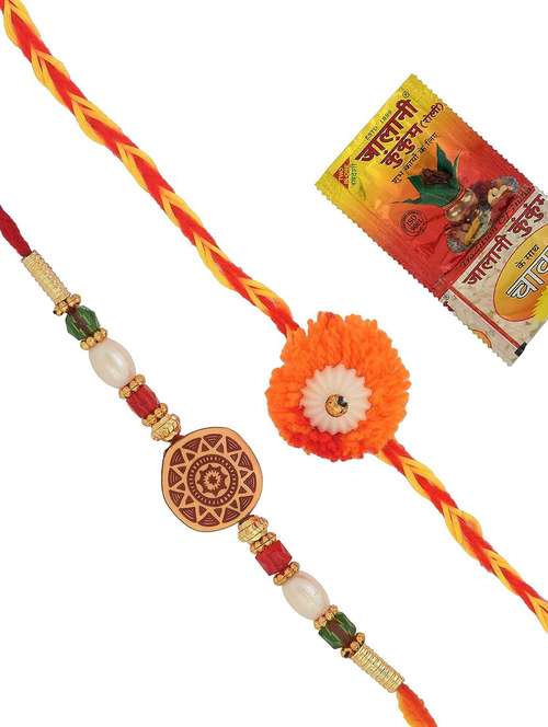 2 different types of Colourful Handmade Rakhi. Comes with a Silver coin, to make your festival special and memorable