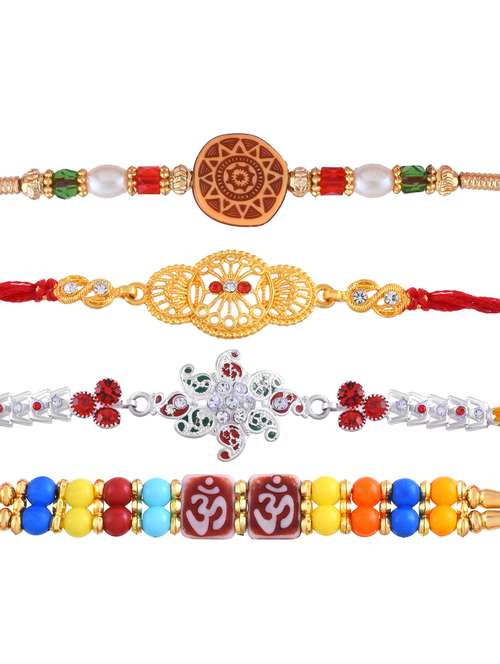 silver with fabric 4 rakhi rakshabandhan combo for bhai bhabhi (pack of 4)