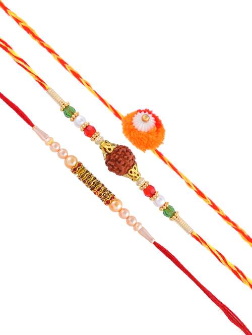 - » multicolor handmade 3 piece rakshabandhan rakhi combo for bhaiya and bhabhi (pack of 3)