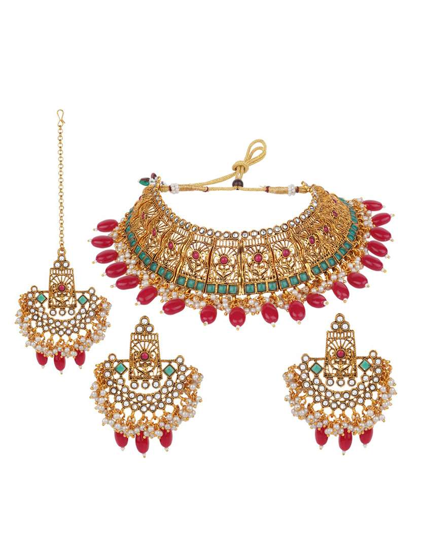 - » matushri art indian traditional necklace with earrings and maang tikka