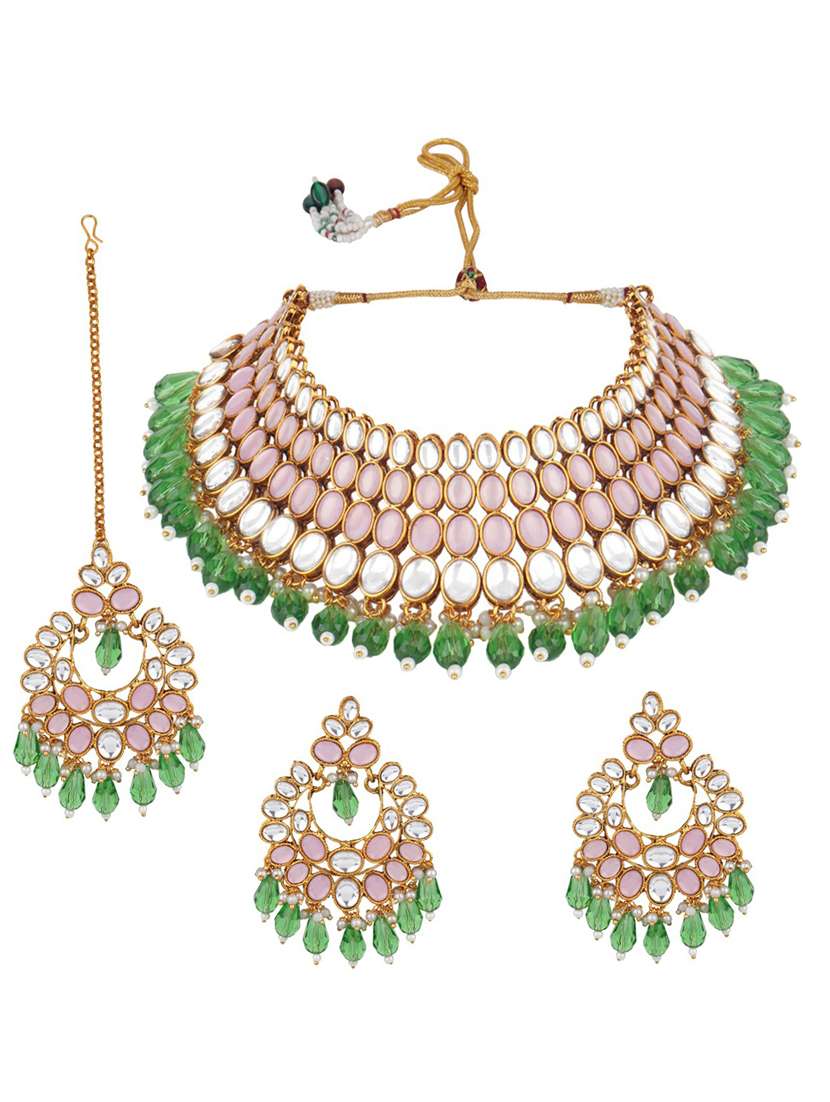 - » matushri art indian traditional necklace with earrings and maang tikka