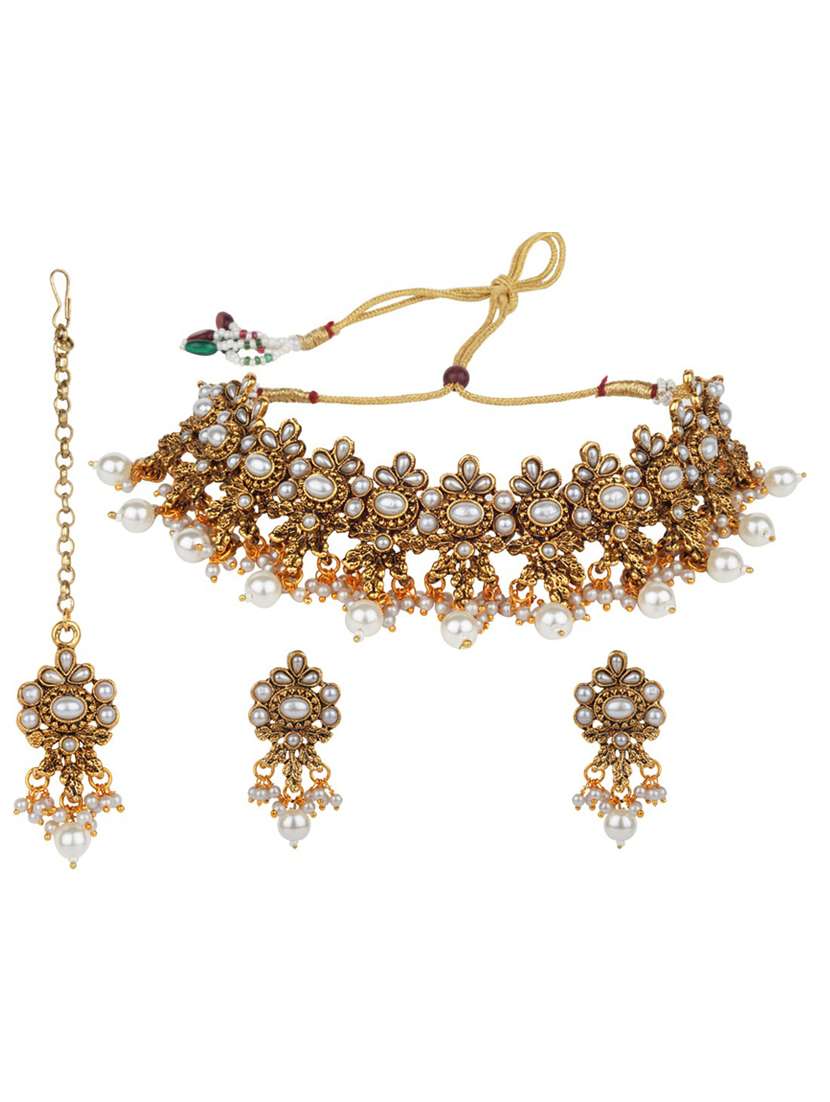 - » matushri art indian traditional necklace with earrings and maang tikka