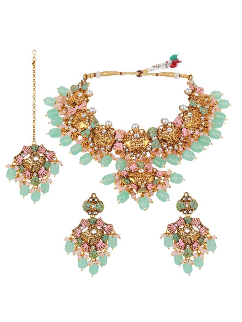 - » matushri art indian traditional necklace with earrings and maang tikka