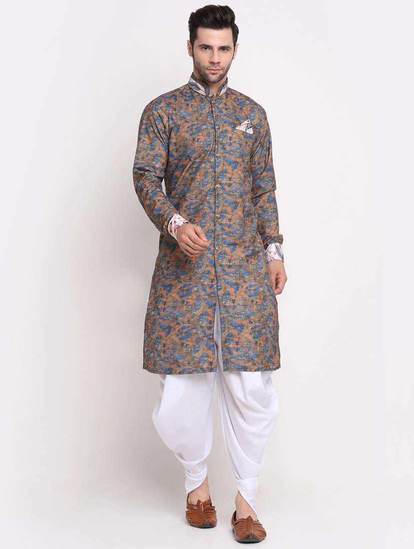 men solid dhoti kurta ethnic wear set - 21621646 - Very Small Image - 1