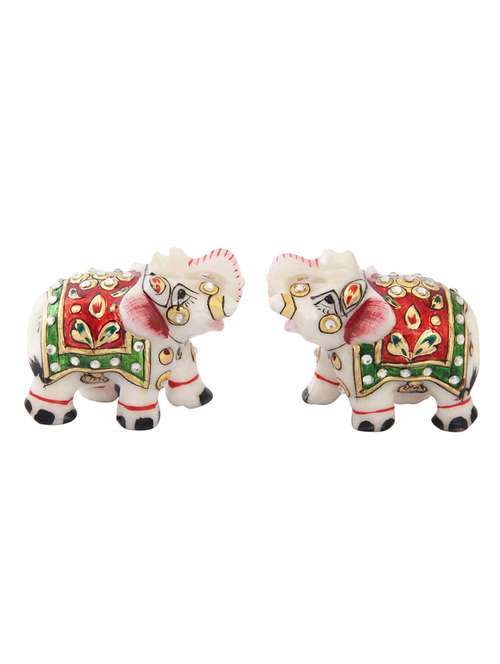 - » elephant pair in marble with meena work in red color by handicrafts paradise