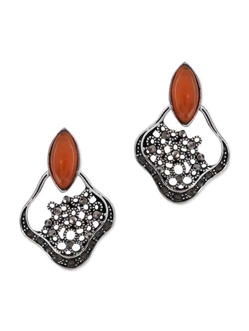 red embellished drop earrings