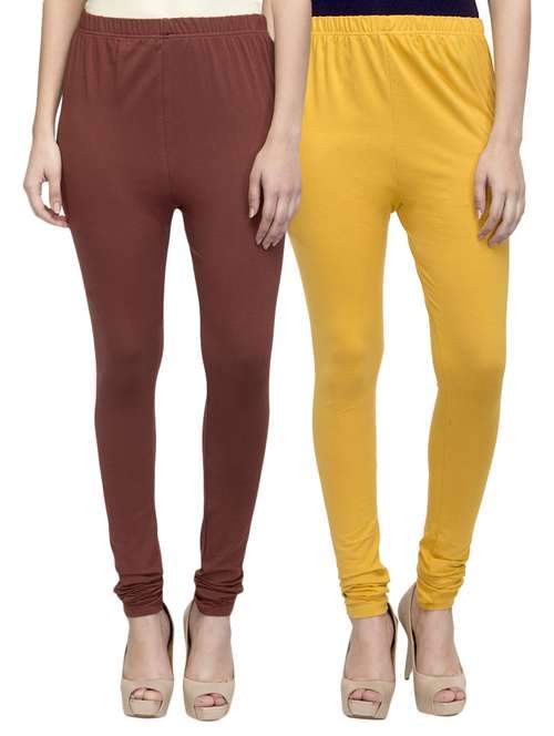 cotton lycra solid leggings (set of 2) - 10797096 - Very Small Image - 1