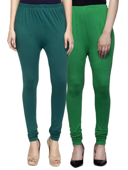 cotton lycra solid leggings (set of 2) - 10797166 - Very Small Image - 1