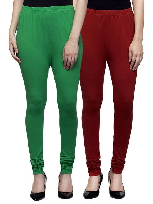 cotton lycra solid leggings (set of 2)