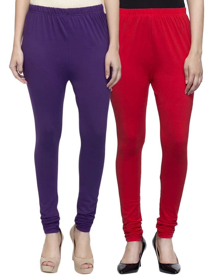 cotton lycra solid leggings (set of 2)