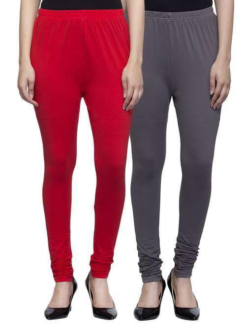 cotton lycra solid leggings (set of 2) - 10797202 - Very Small Image - 1