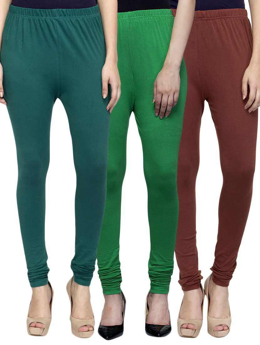 cotton lycra solid leggings (set of 3)