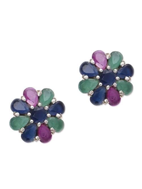 precious gemstones embellished 92.5 sterling silver earrings - 9675656 - Very Small Image - 1