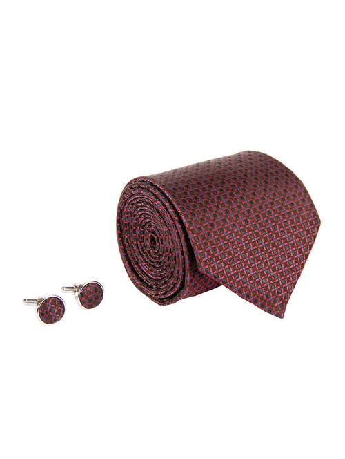 brown woven tie and a pair of cufflinks - 14337979 - Very Small Image - 1