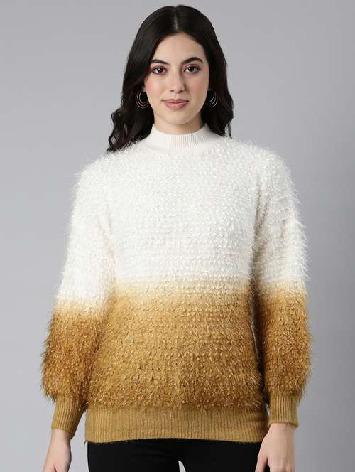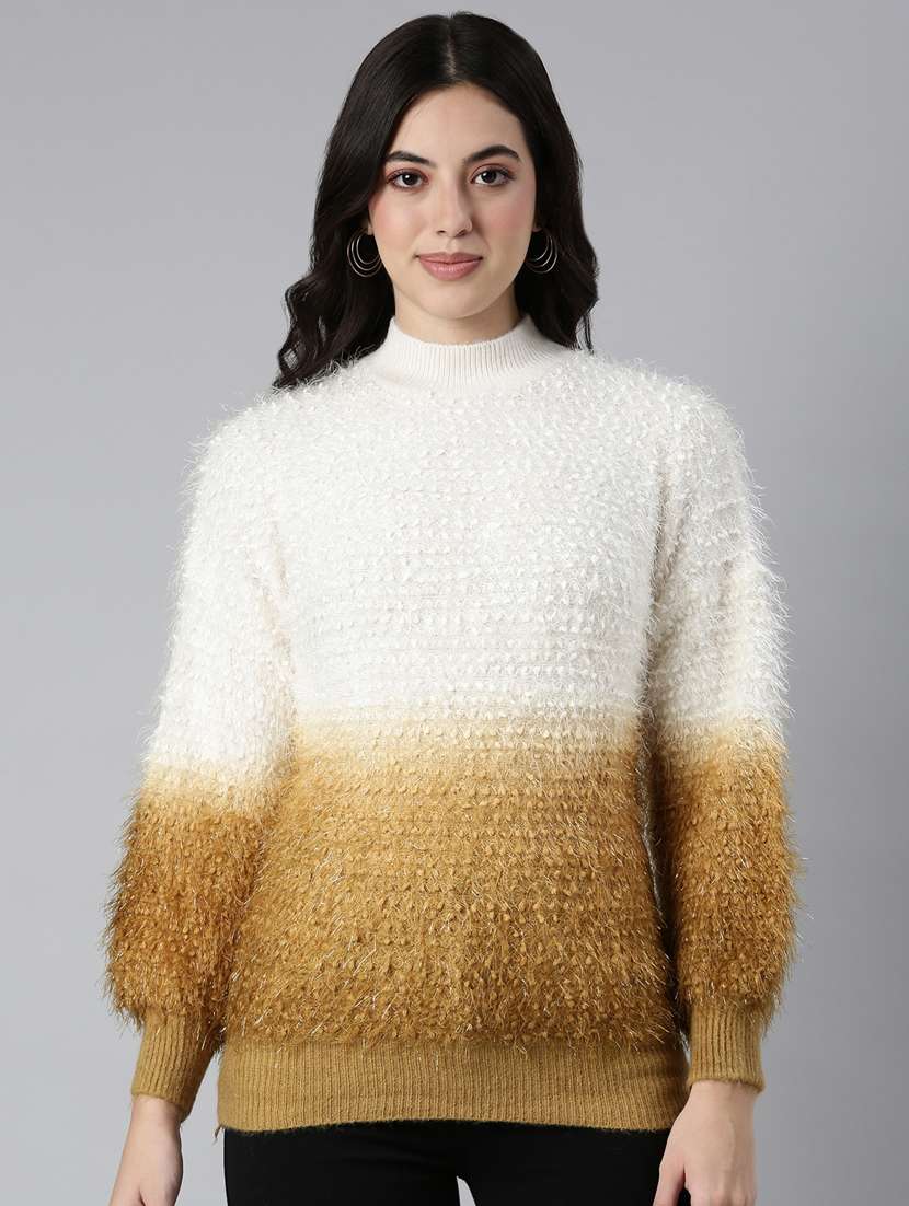 SHOWOFF Women's Speckled Round Neck Regular Mustard Fuzzy Pullover