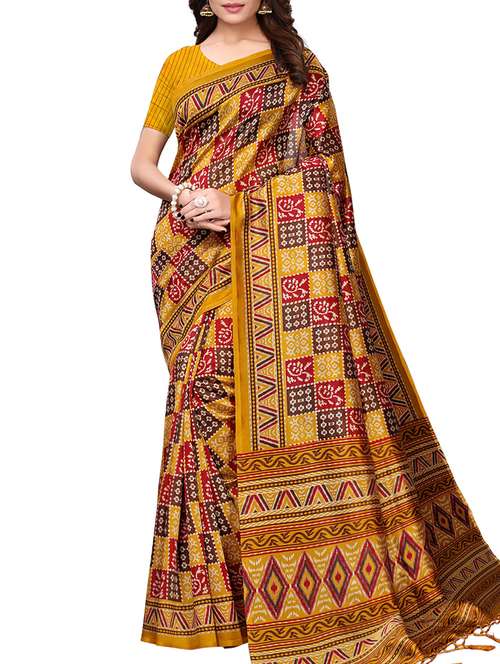 - » checkered ethnic motif printed saree with blouse