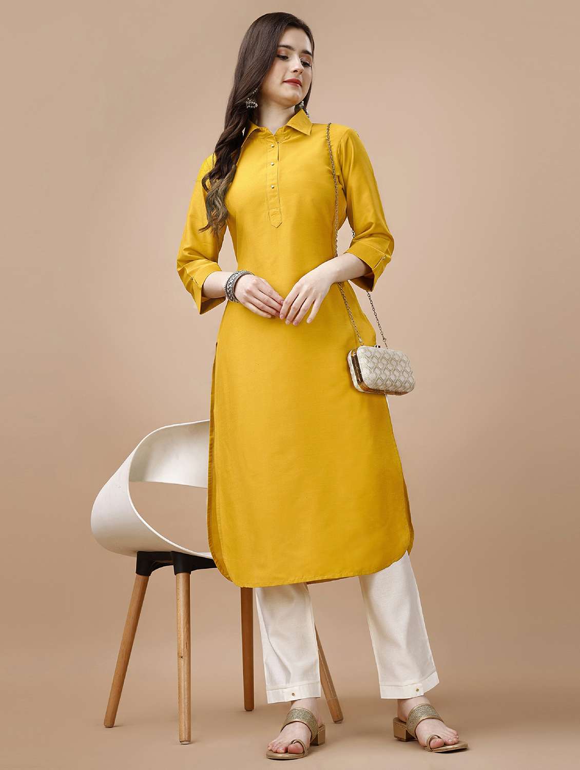 - » women yellow solid straight kurta