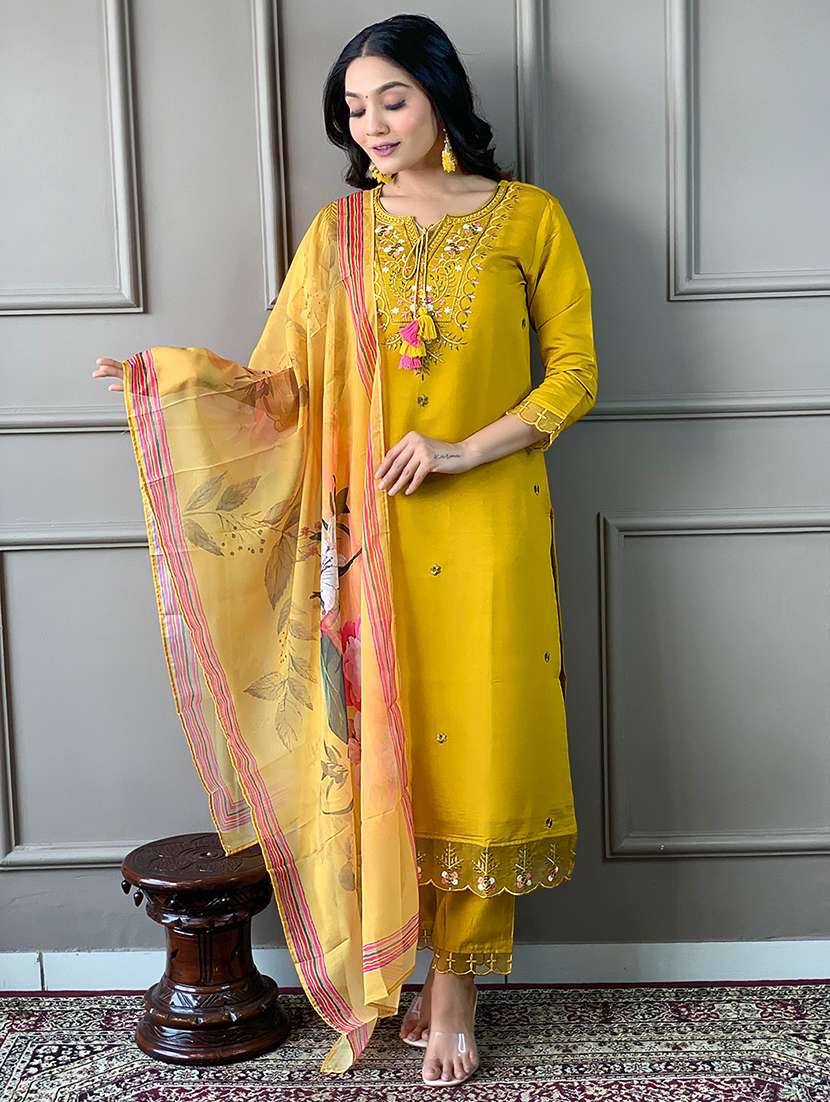 - Browse through the latest range of ethnic sets for women with tailored sleeve designs with embroidered works.