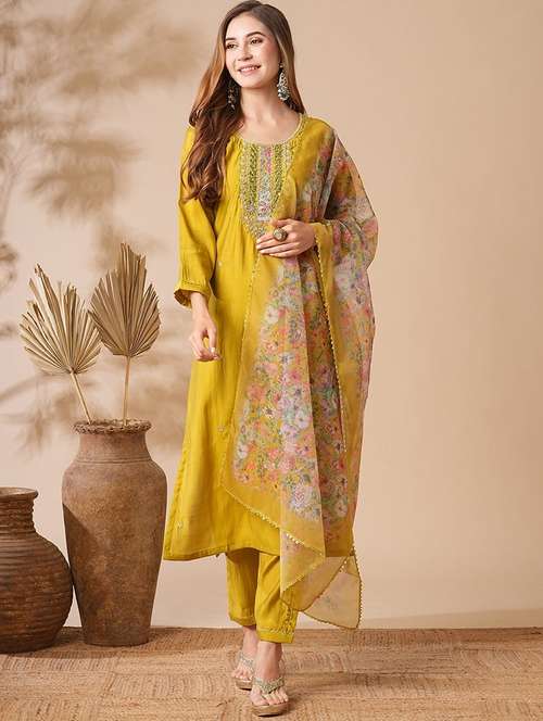 women three quarter sleeve kurta pant with dupatta set - 21971074 - Very Small Image - 1