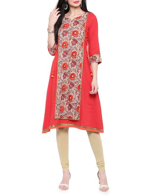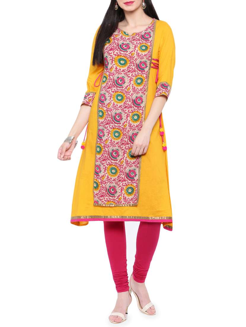 - Grab this beautiful kurta made up of cotton fabric featuring round neck designs.