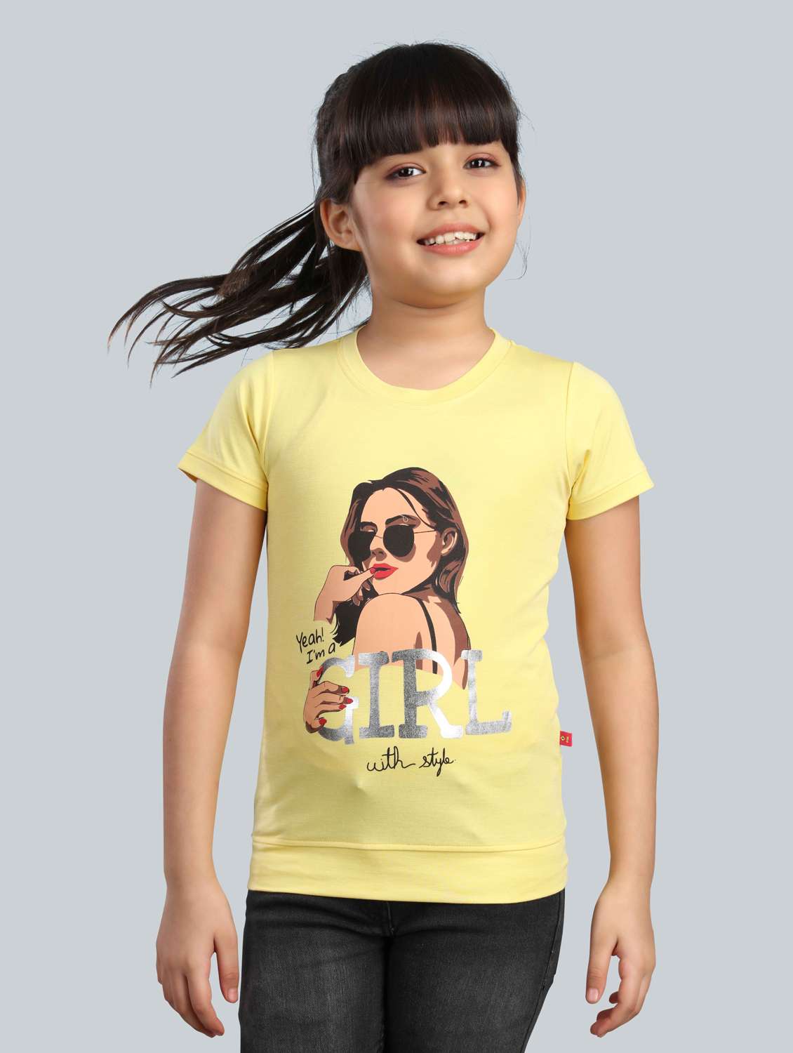 - » mustard cotton blend front print tee
