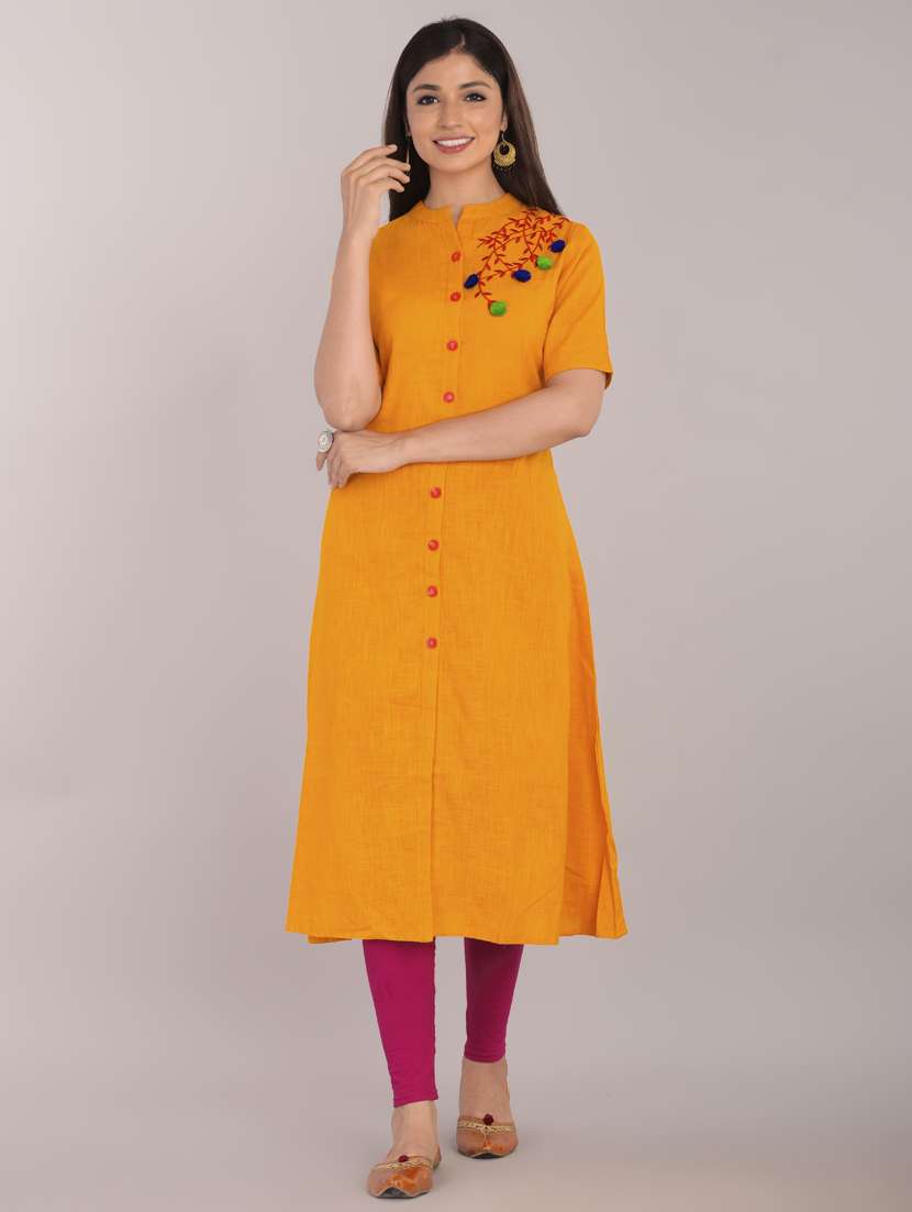 - Grab this beautiful kurta made up of cotton blend fabric featuring mandarin collar neck designs.