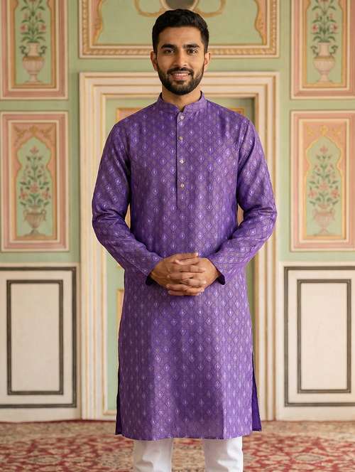 This cotton blend printed kurta. Featuring an all-over traditional geometric print, a classic mandarin collar, and a comfortable straight fit, it offers effortless elegance. The breathable fabric ensures all-day comfort, making it ideal for festive occasions and casual ethnic wear.