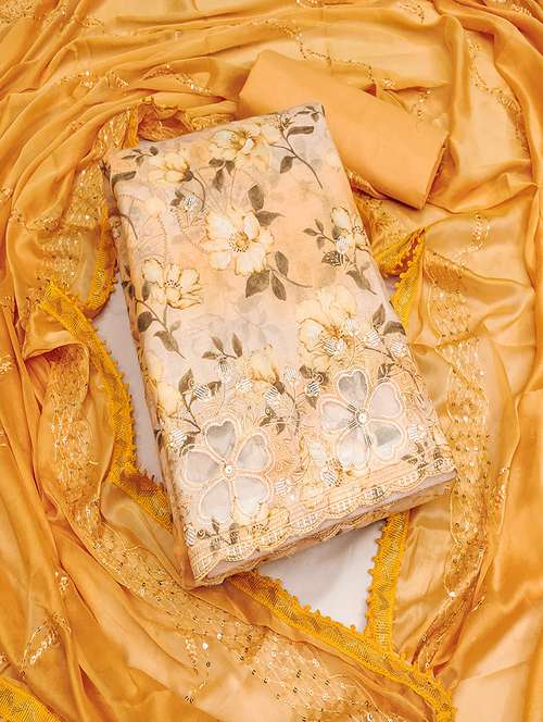 - Look ultra gorgeous in unstitched suits from Lilots and grab these beautiful suits in mustard colour.