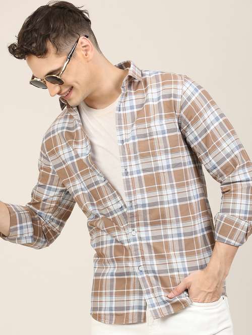 - » men checkered long sleeve regular fit casual shirt