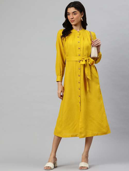 - Looking for some awesome collection of dresses? Well, lay your hands on this dress from Cottinfab and also get the option of choosing from mustard colour.