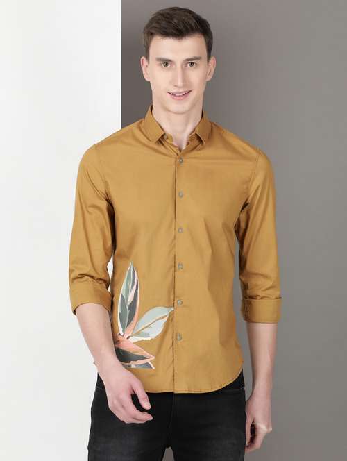 men placement print long sleeve regular fit casual shirt