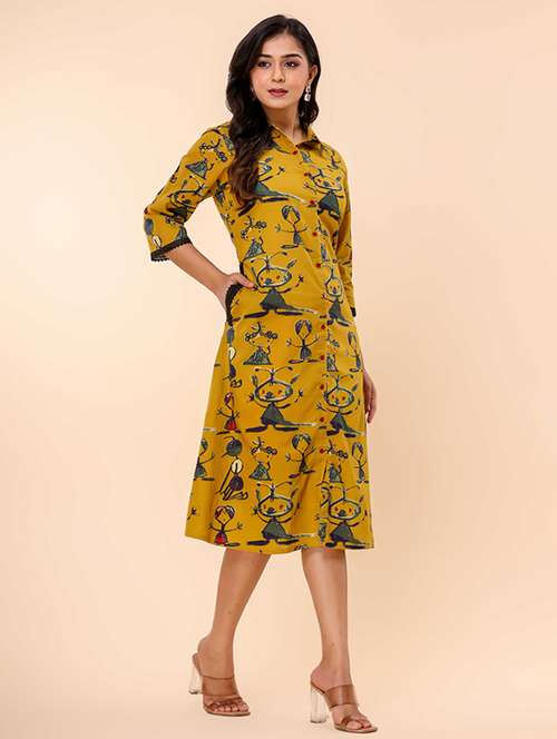 - » mustard printed a-line ethnic dress