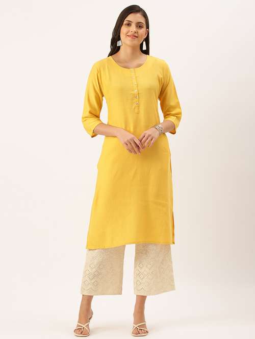 - Grab this beautiful kurta made up of cotton fabric featuring boat neck neck designs.