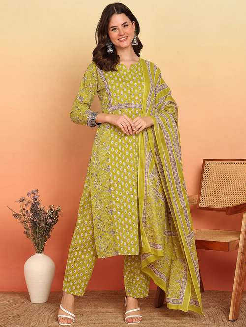 - Find gorgeous sets of ethnic wears in trending designs in green colors suitable for casual wear of occasions.