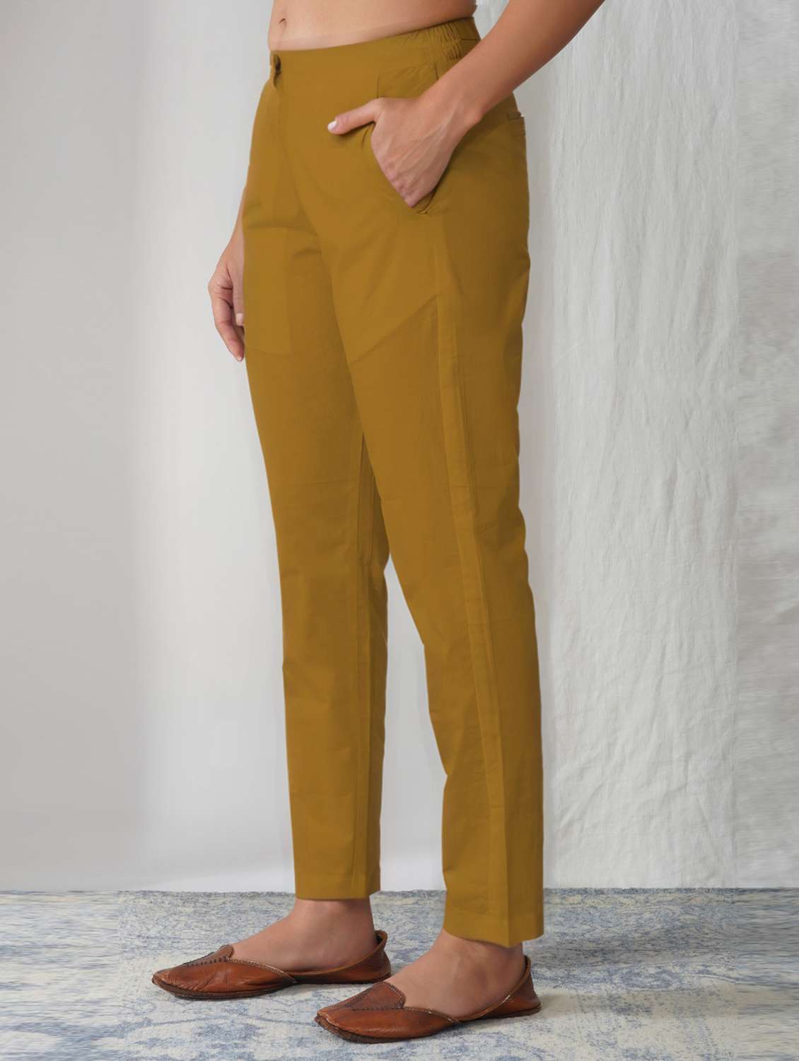 women solid mid rise ankle length tapered pant