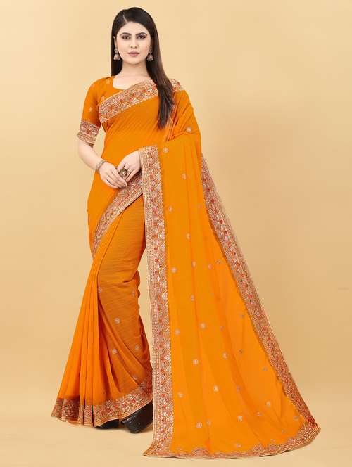 - » solid embroidered woven saree with blouse