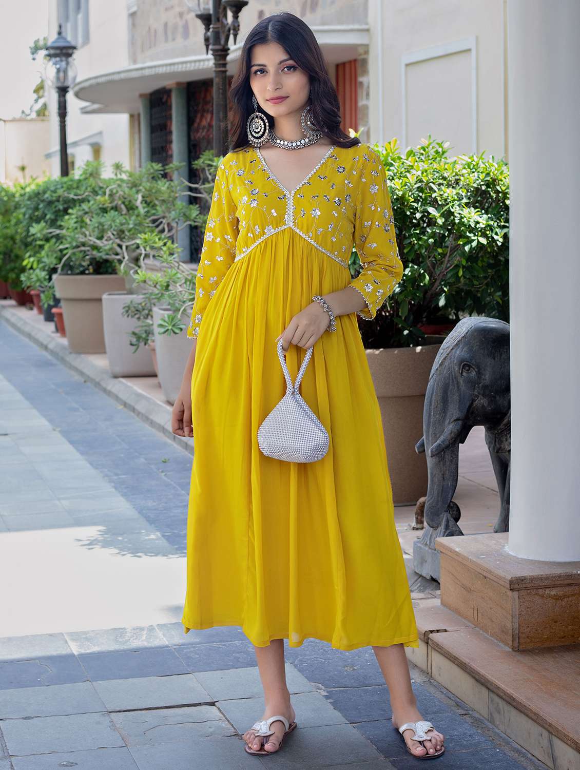 - » women mustard gotta a-line ethnic dress