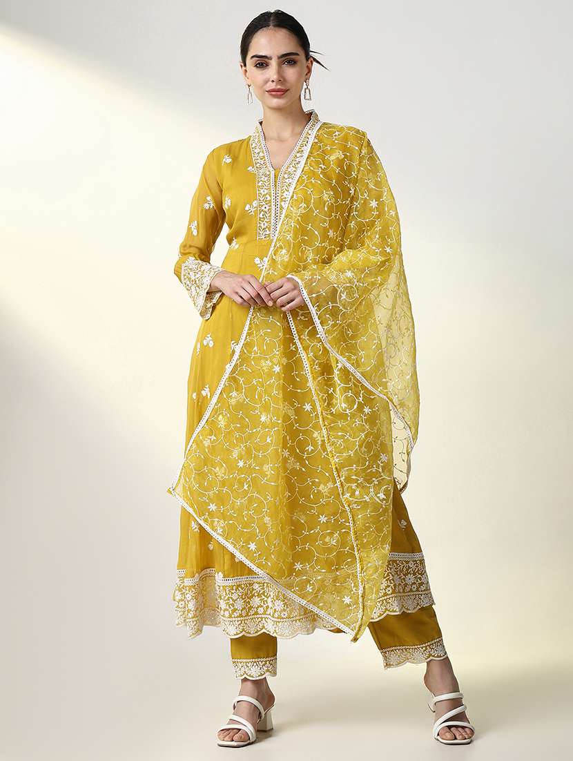 - Browse through the latest range of ethnic sets for women with tailored sleeve designs with embroidered works.